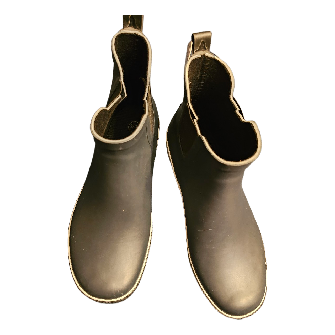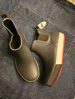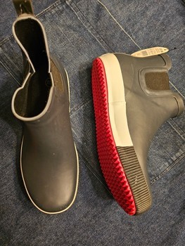 Black rubber boots from FeetYa with white sole and red outsole. Size 37/38. Brand new with price tag.