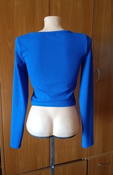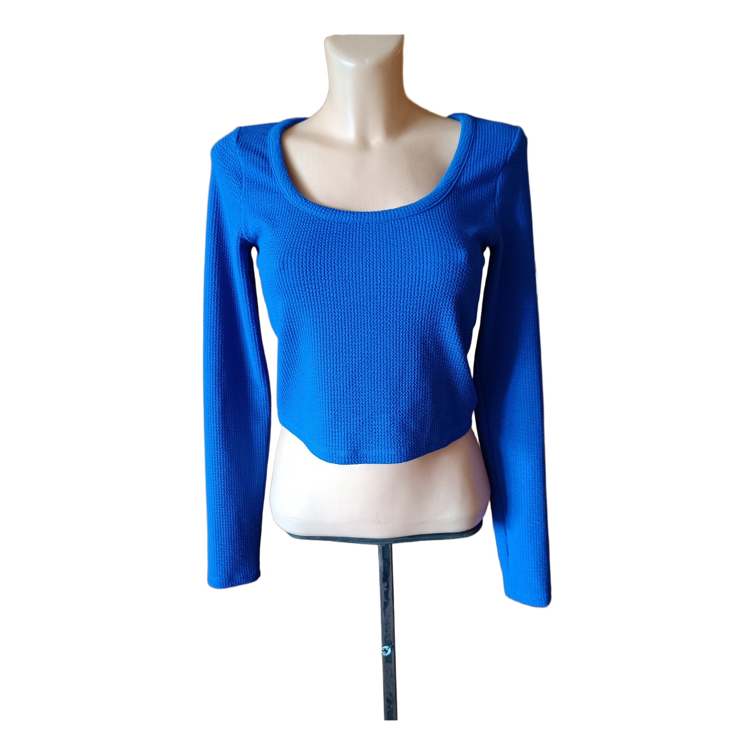 Long-sleeved crop top in a textured fabric. Color blue, size M.