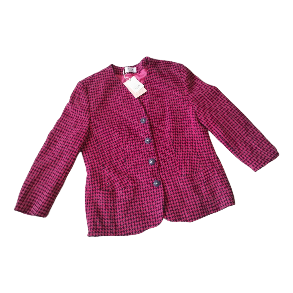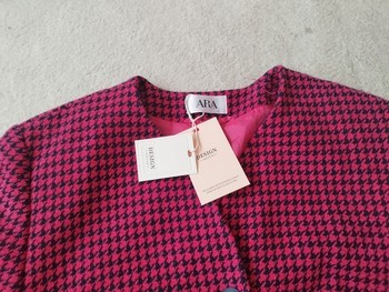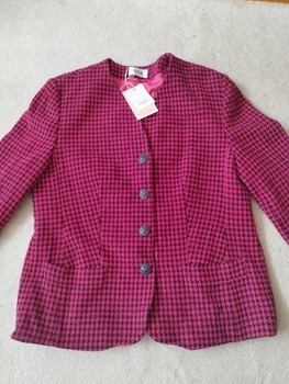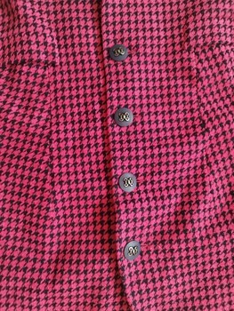 Pink houndstooth blazer with a button closure and no collar. New with tags.