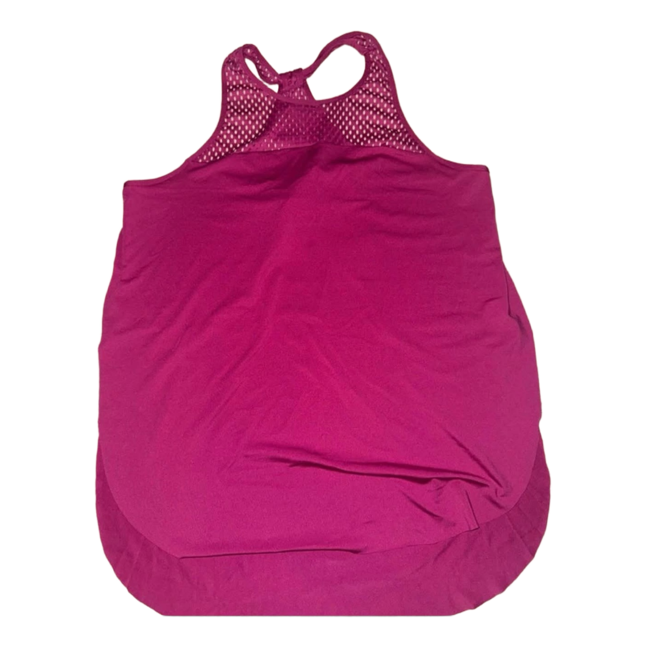 Sports tank top with mesh panel detailing on the neckline. Color pink, size S.