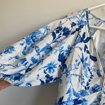 H&M linen blend floral cropped top XS puff sleeve summer blouse boho cottagecore