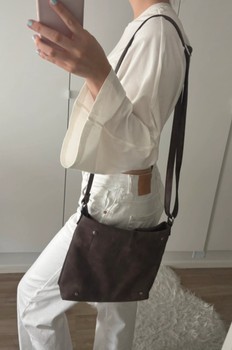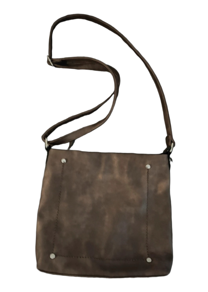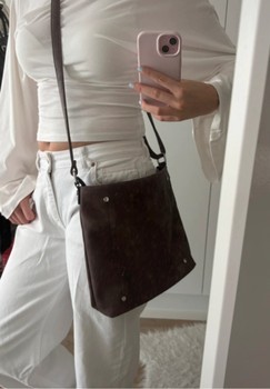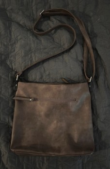 Brown shoulder bag. Adjustable shoulder strap and zippered pocket.