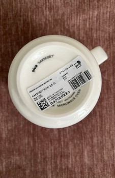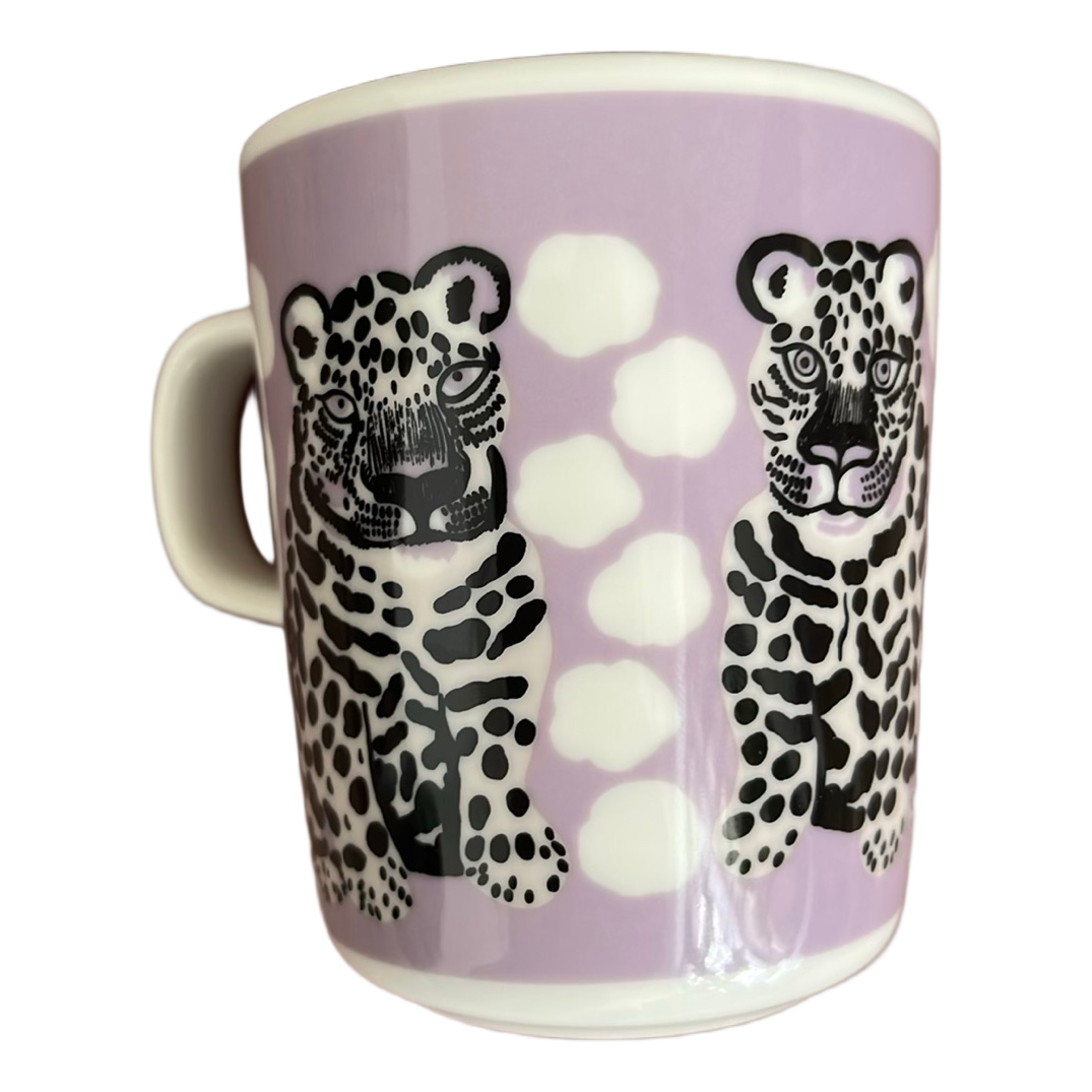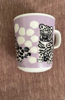 Purple Marimekko Oiva mug with animal pattern. Unused