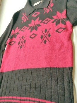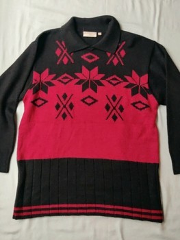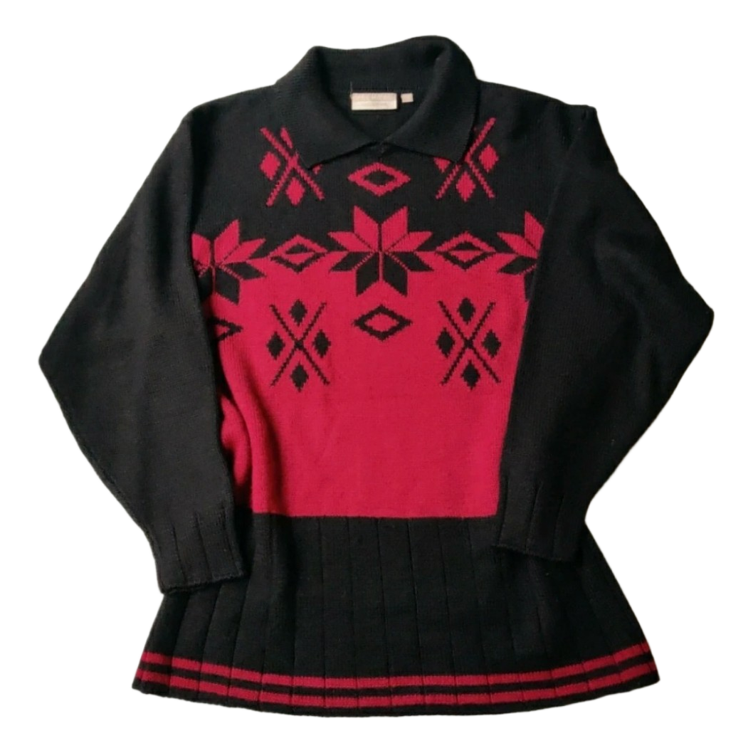 Vintage 90s Sweater with Collar - Black Red - S/M