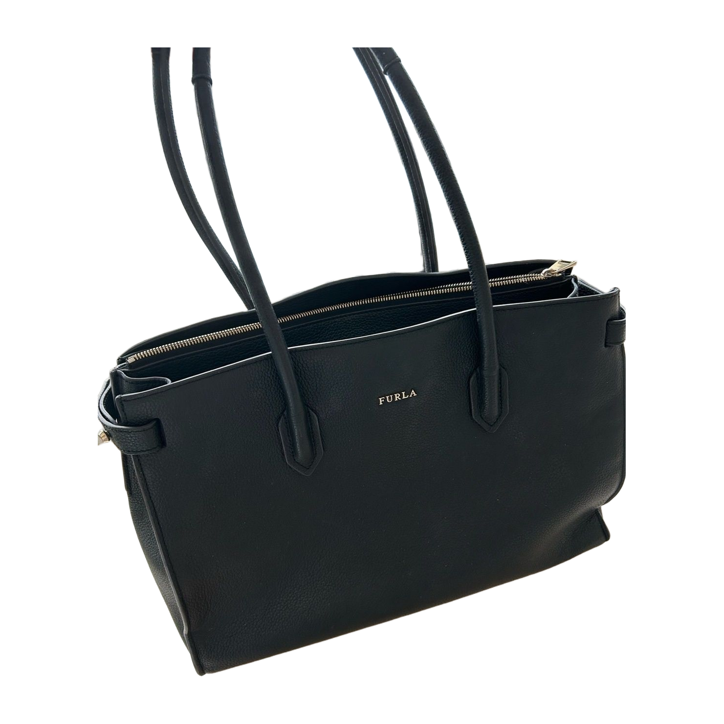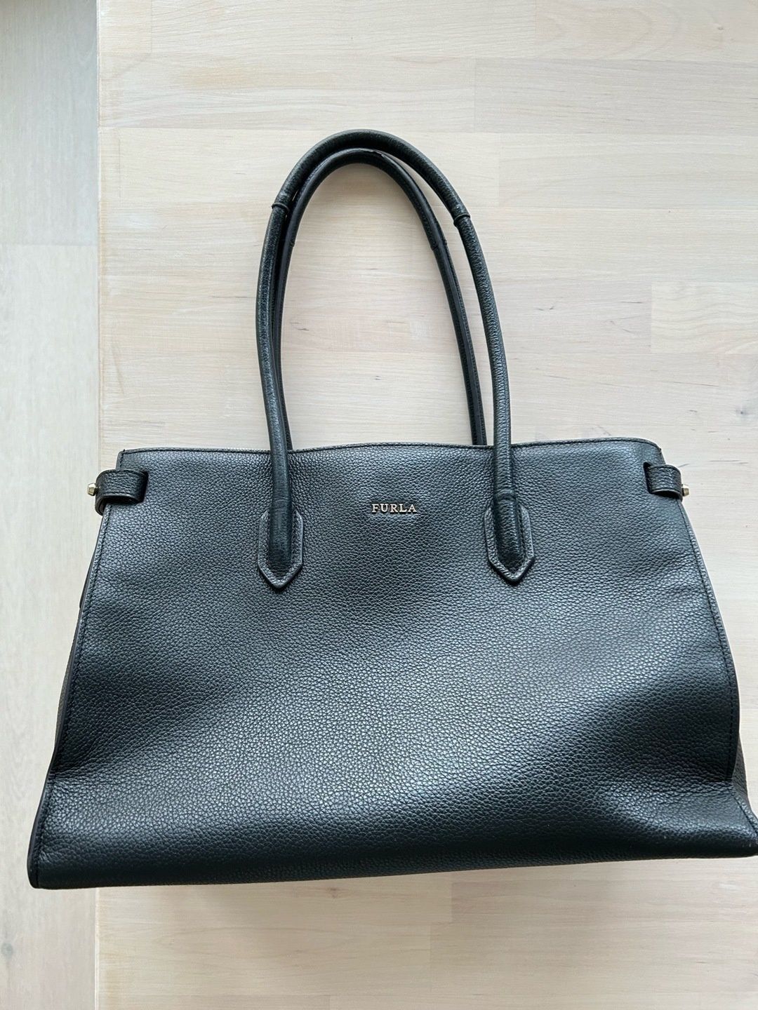 Lovely Furla black bag! A laptop and basic everyday things fit in the bag :)