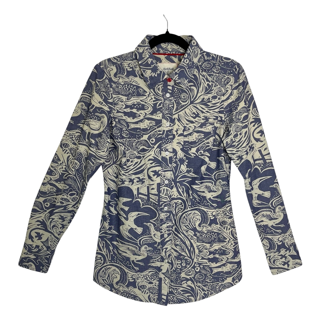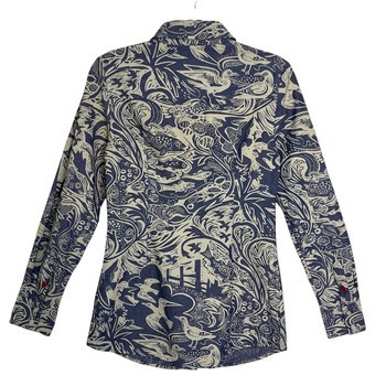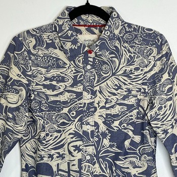 Fun and vibrant print, mixed color buttons. Feminine cut. Excellent condition, Measurements in the pictures.