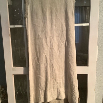 Lovely linen dress. The front is slightly see-through when worn, so those pockets come in handy.