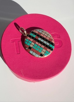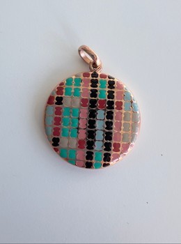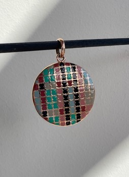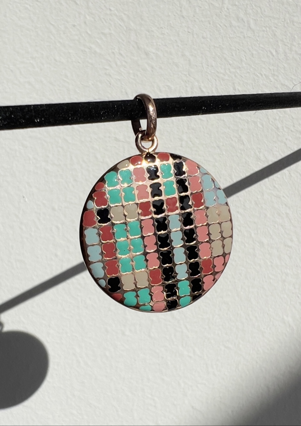 Round pendant featuring the iconic bear motif in colorful patterns. Made of 925 sterling silver vermeil.