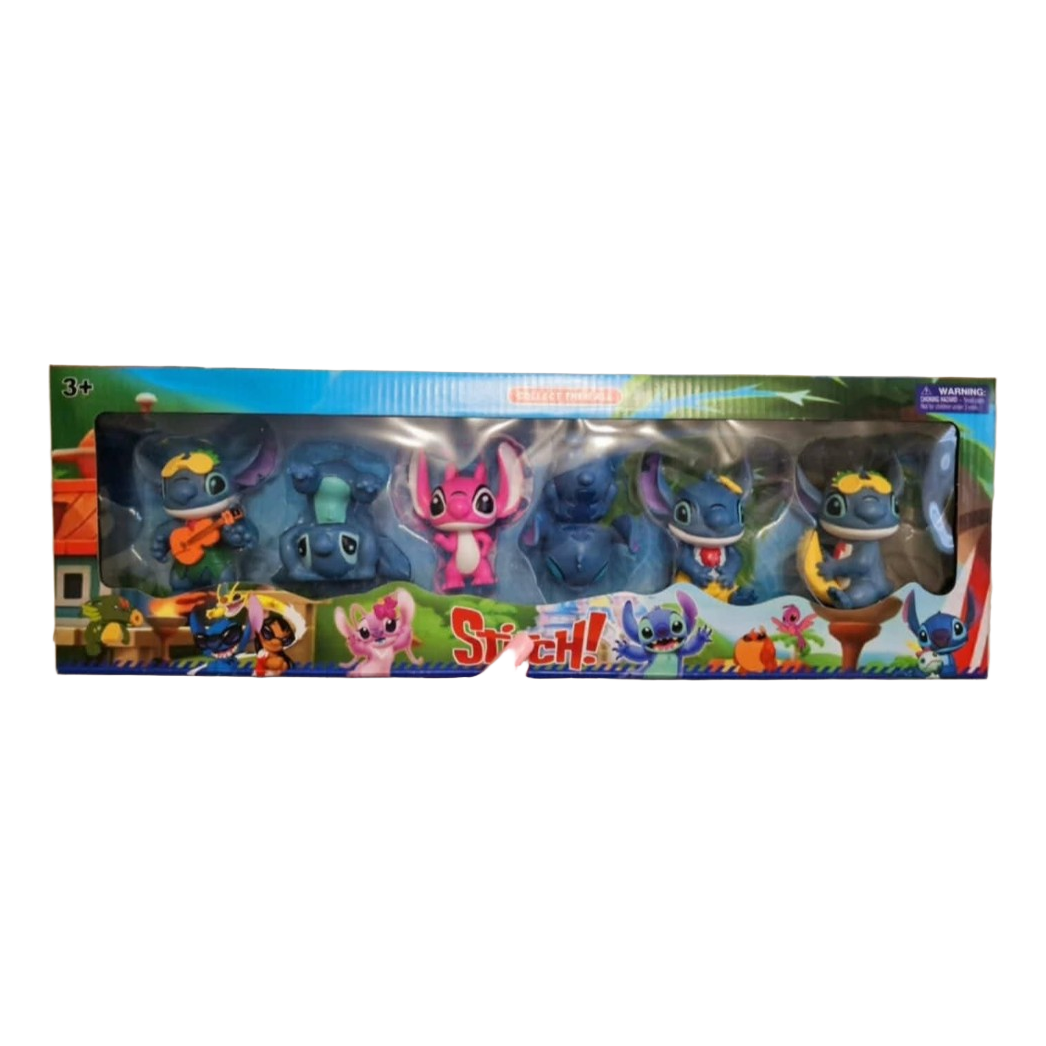 Set of collectible Disney Stitch figurines in a box. Includes several different character poses.