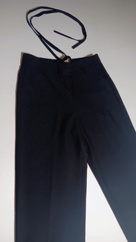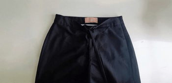 Straight, wide-legged pants. Size: M. Color: black. Beautifully draping, ribbon detail at the waist. Measurements: Waist: 76 cm, Length: 100 cm, Leg: 74 cm, Leg opening circumference: 50 cm. Brand: JJXX. Side seam zipper and button.