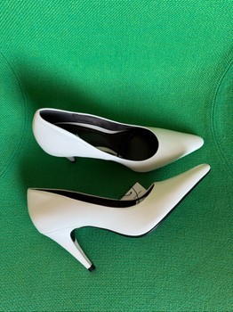 White leather high heels