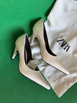 White Zara high heels with a pointed toe. Size 39, made of leather.