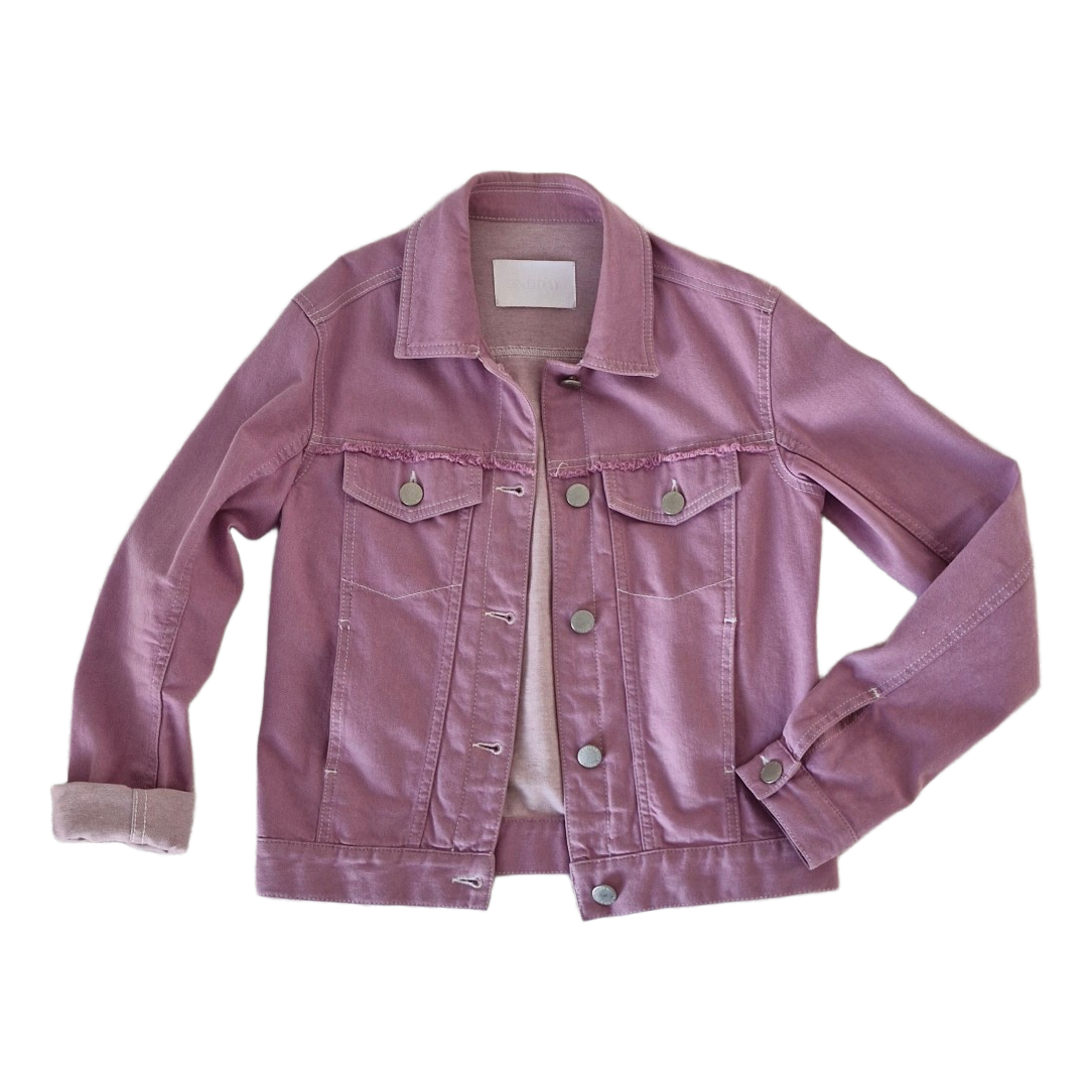 Light pink denim jacket. Size 34. Made of 98% cotton and 2% elastane. Danish Day Birger et Mikkelsen collection jacket from a little over 10 years ago. Bought at the Copenhagen airport store. Impeccable condition, has been little used. The jacket stretches slightly and the fabric is softer than denim. The color is a slightly purple-tinged pink.