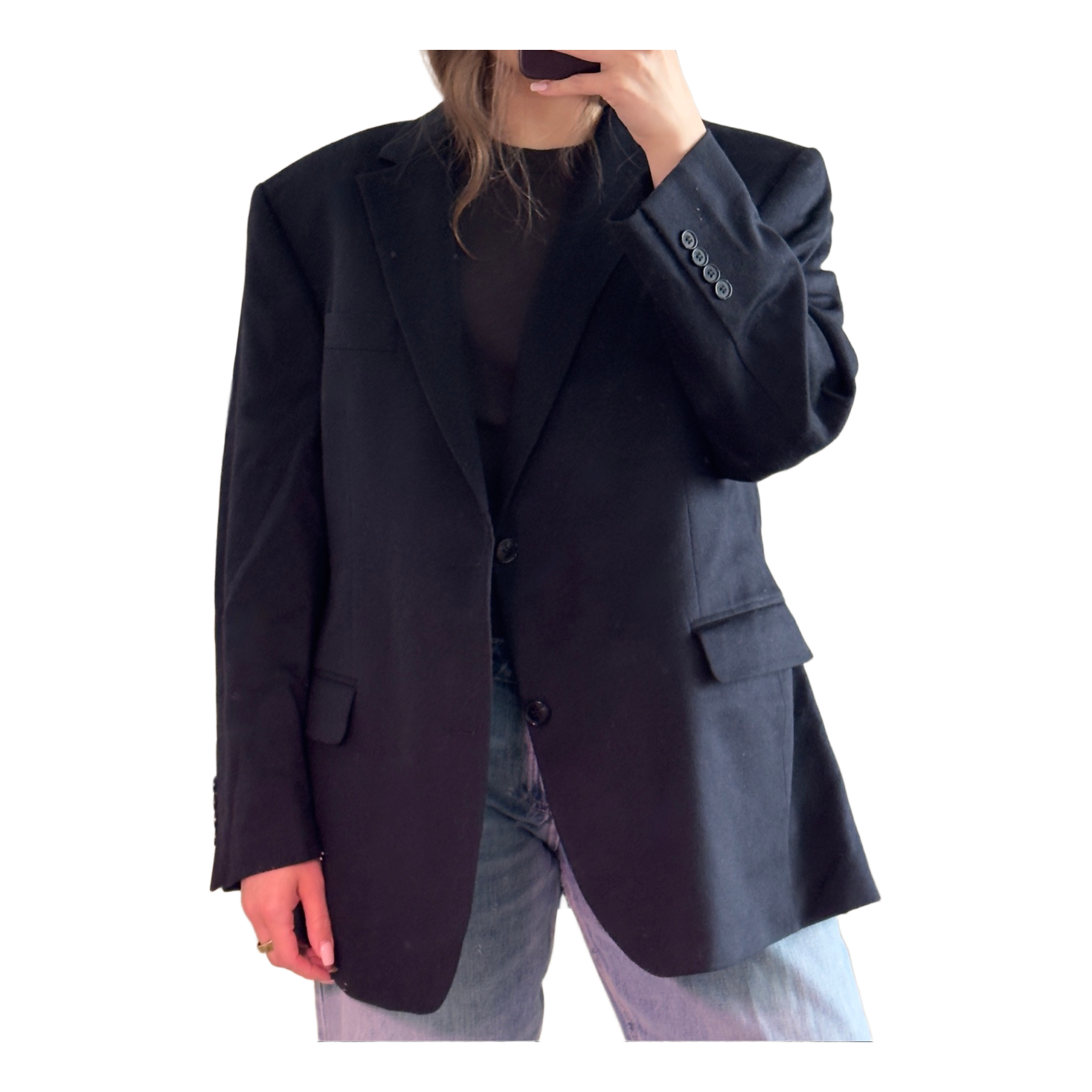 Dark blue men's blazer, 100% cashmere. Size 26.5. I bought this used but it is in really good condition and there are no visible signs of wear.