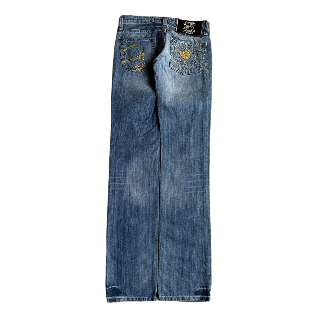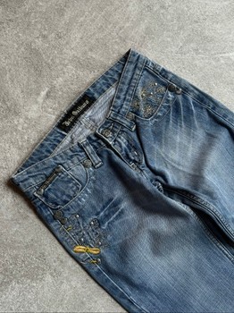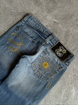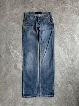 These jeans perfectly capture Galliano’s iconic aesthetic of the era: romantic detailing, ornamental embroidery, and bold yet feminine design. Featuring a low waist fit with a subtle slight flared leg, they create a classic Y2K silhouette that is highly sought after today.
