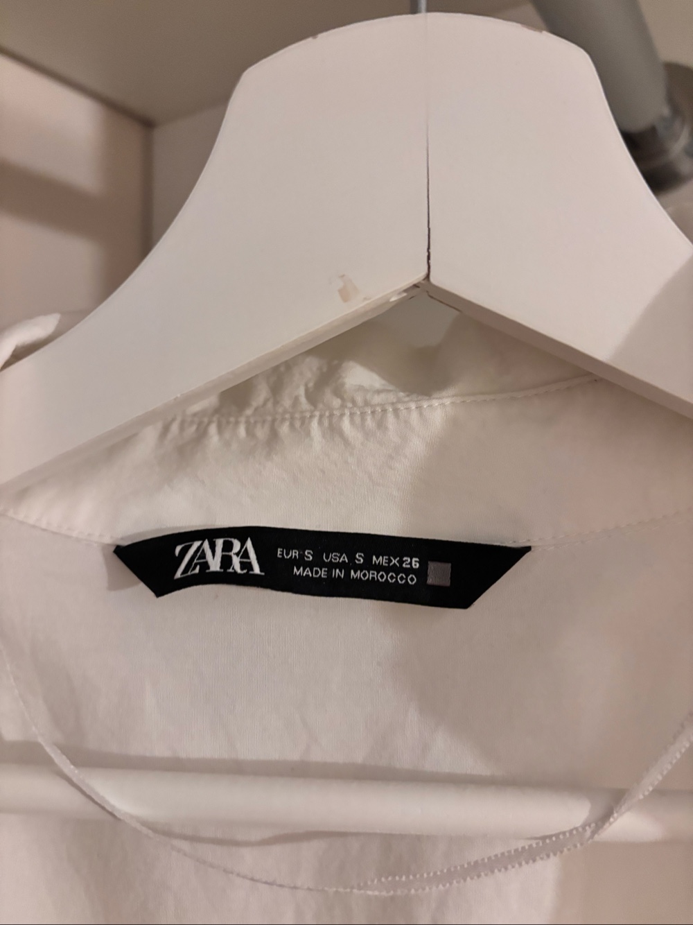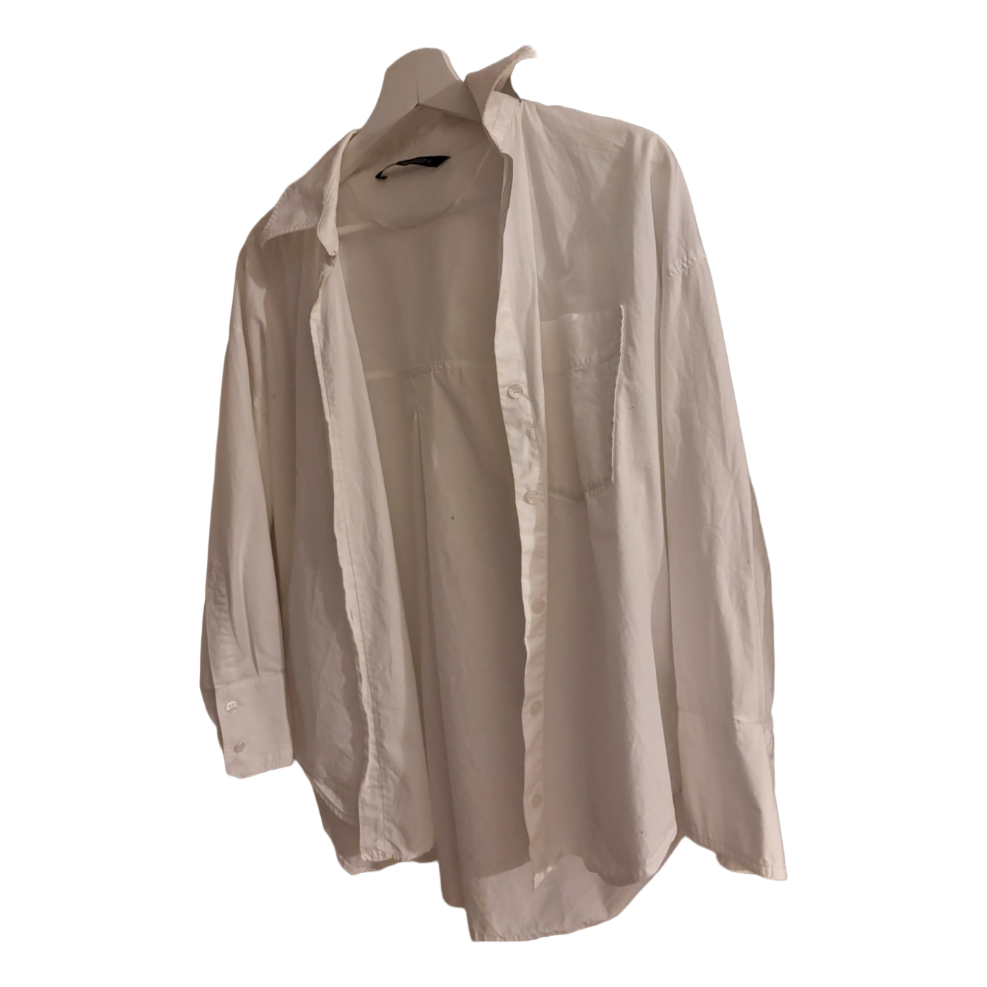 Plain white button-down shirt by Zara with a front pocket. Size S.