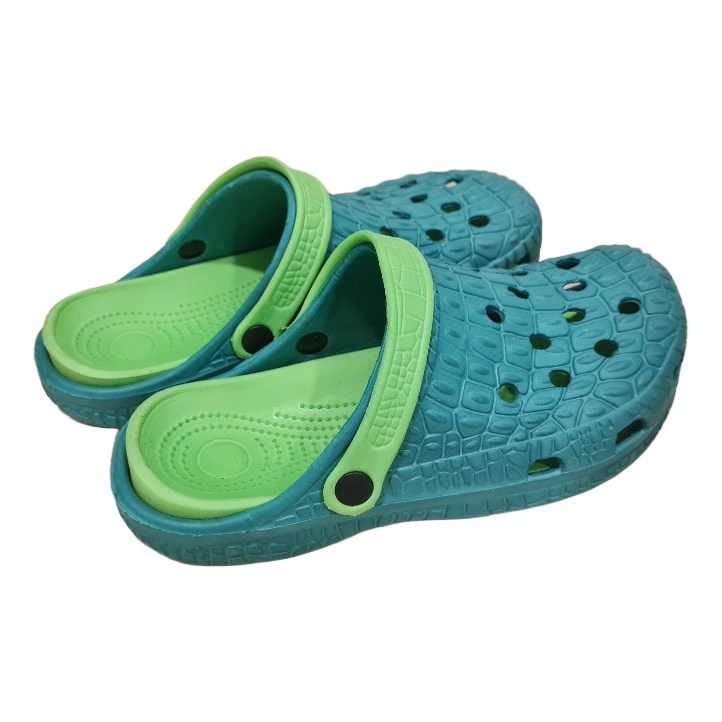 Green and lime-green booties. Crocodile leather patterning.