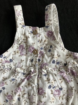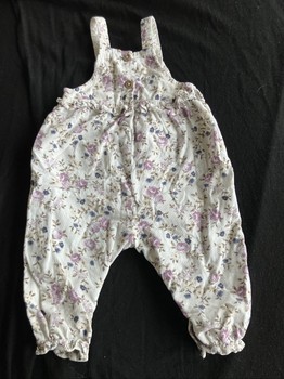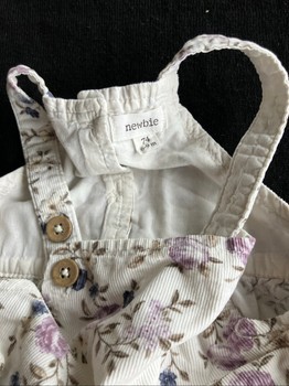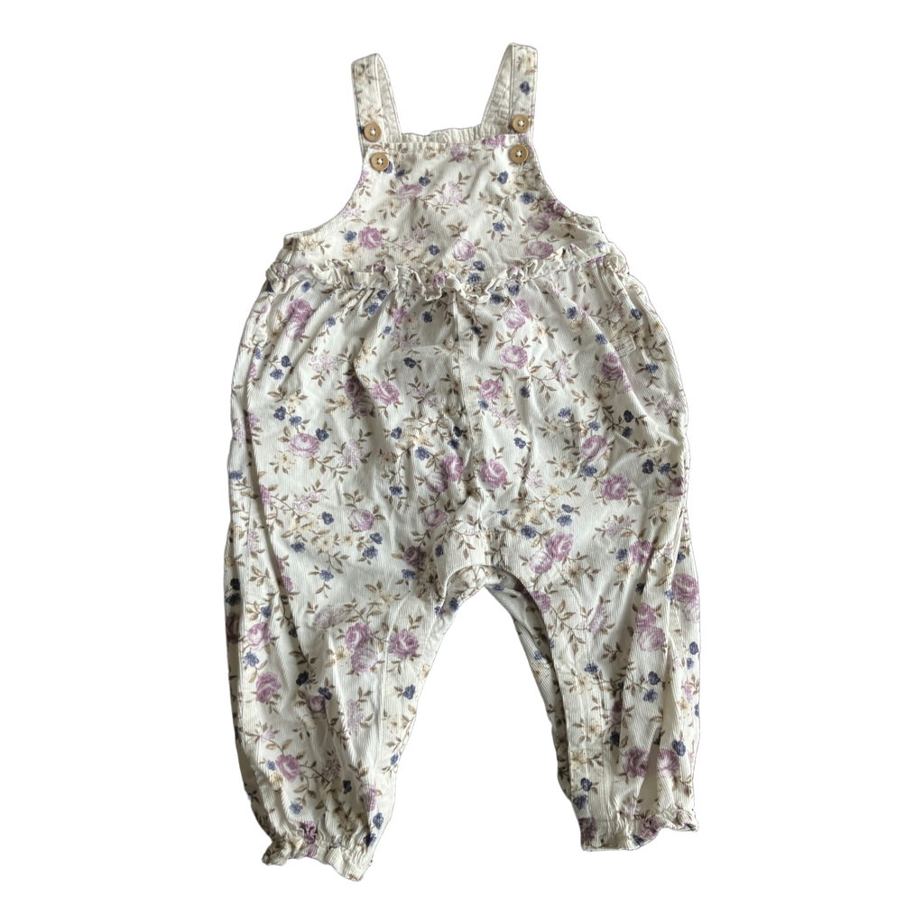 White floral corduroy overalls. Size 74, brand Newbie. Snap fastenings at the crotch. In very good condition.
