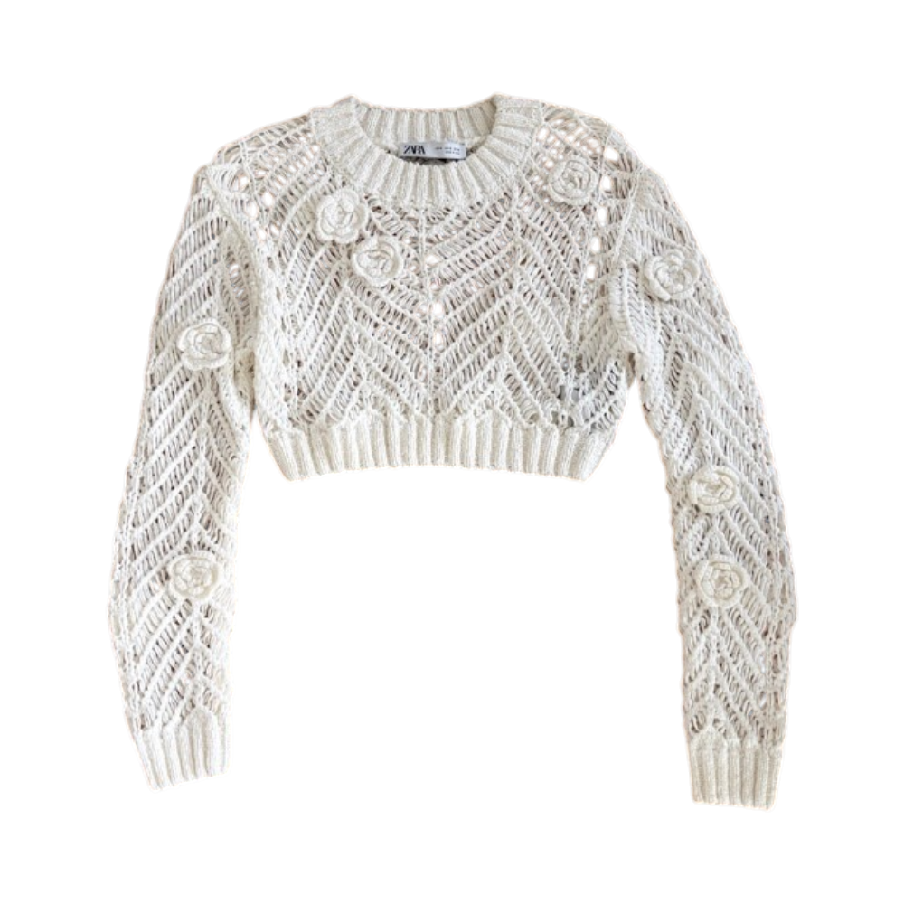 Crochet floral crop sweater