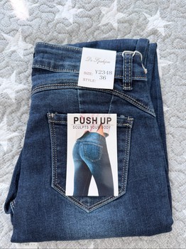 Very stretchy, skinny-style jeans with elastane and push-up. Completely new, marked 36, but more closely corresponds to size 34.