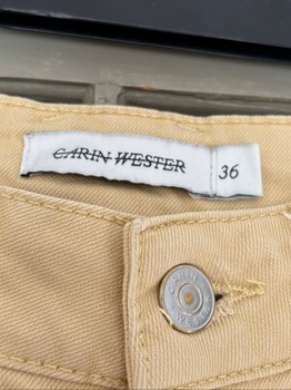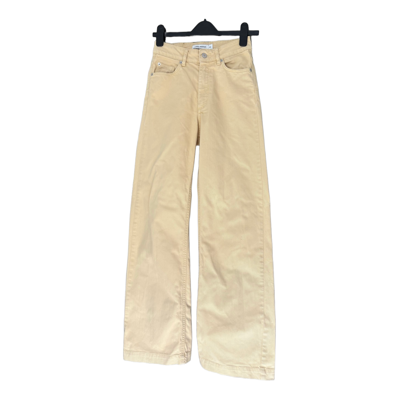 Carin Wester's gentle pale yellow jeans for summer. Straight, wide leg. Size 36. The leather brand tag on the waist is slightly cracked, small dark mark on one leg, see picture. Otherwise in good condition.