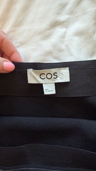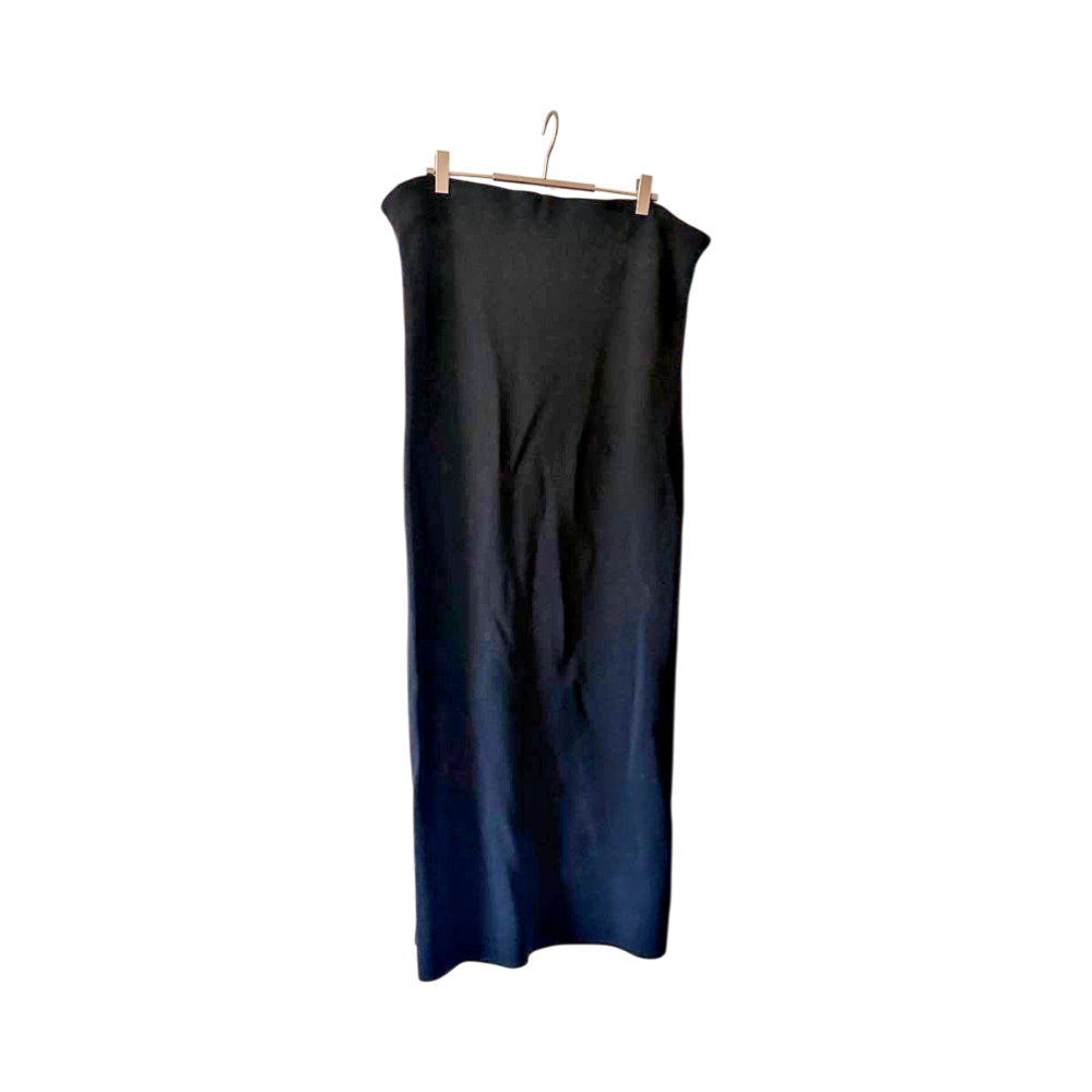 Black, long skirt, with elastic waist. Made from a blend of viscose, polyamide and elastane.