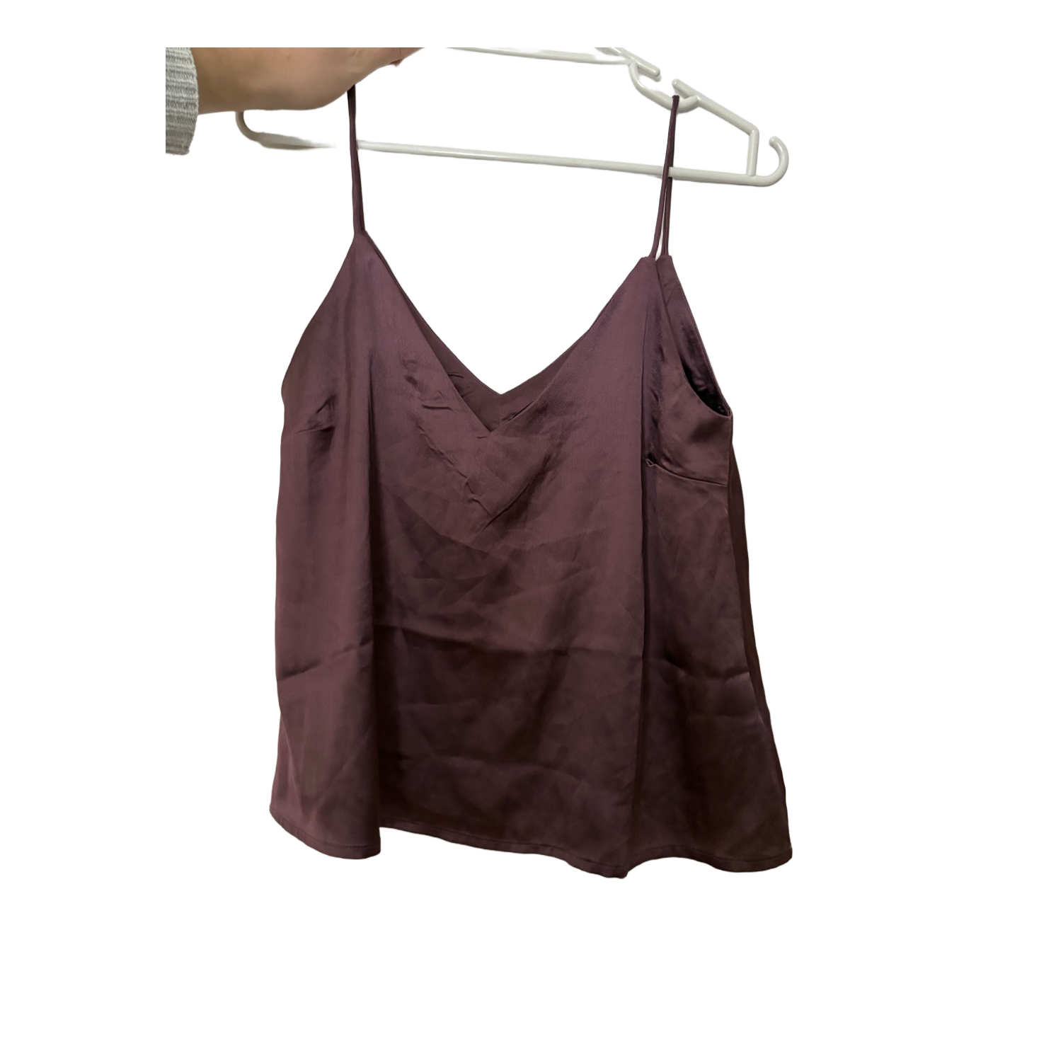Purple satin top with thin straps. Size S.