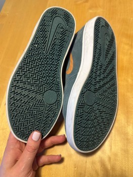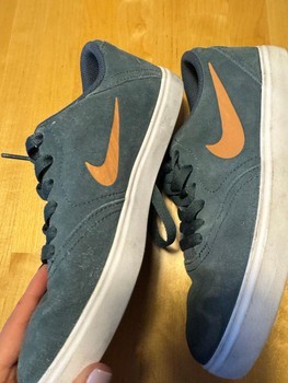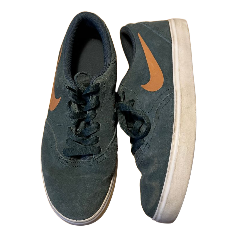 Suede Nike sneakers. Green upper and orange logos. Used only indoors!