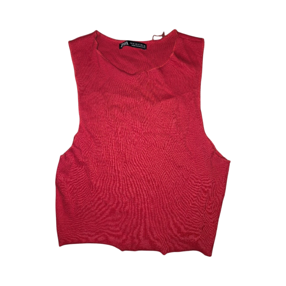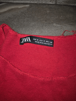 Red Zara top, size S, stretches. Material is at least cotton and elastane. Somewhat used