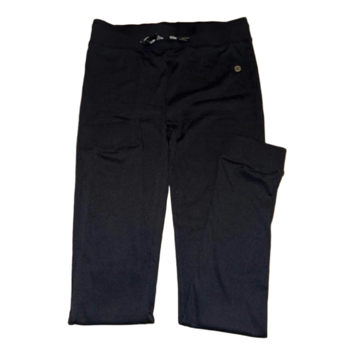 Black sports leggings with an elastic waistband. Featuring a small logo detail.