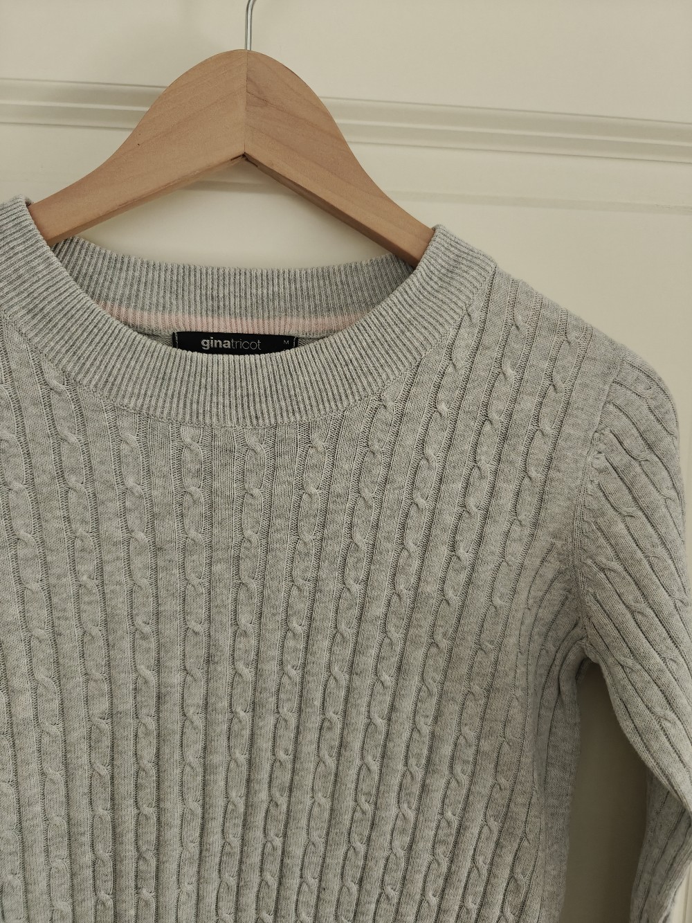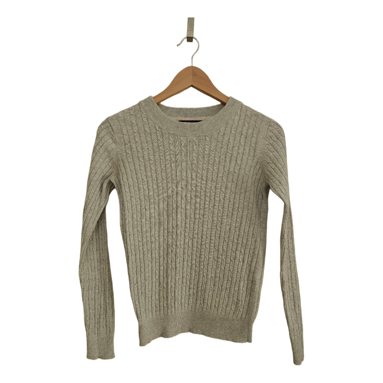 Gray cable knit sweater. Size M, fits better a size S.
