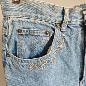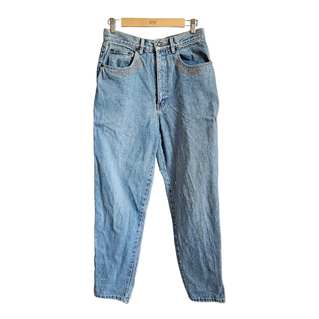 Vintage Y2K embroidered high waist mom jeans denim M/L retro 90s streetwear skater grunge indie