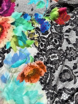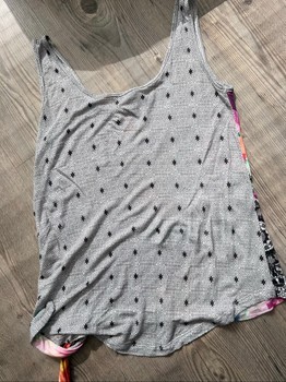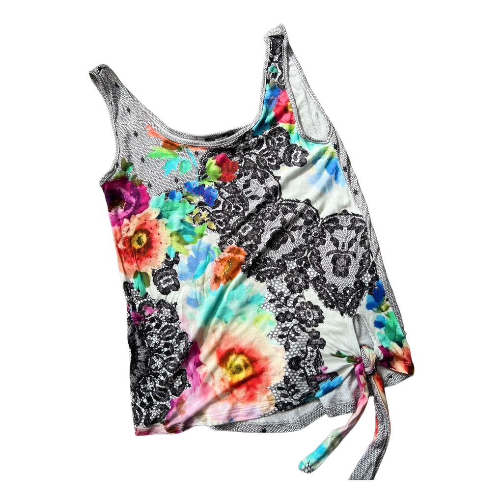 Desigual elastic top, hem with tie detail. Size S, length about 60 cm and armpit-to-armpit measurement unstretched about 42 cm.