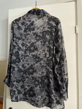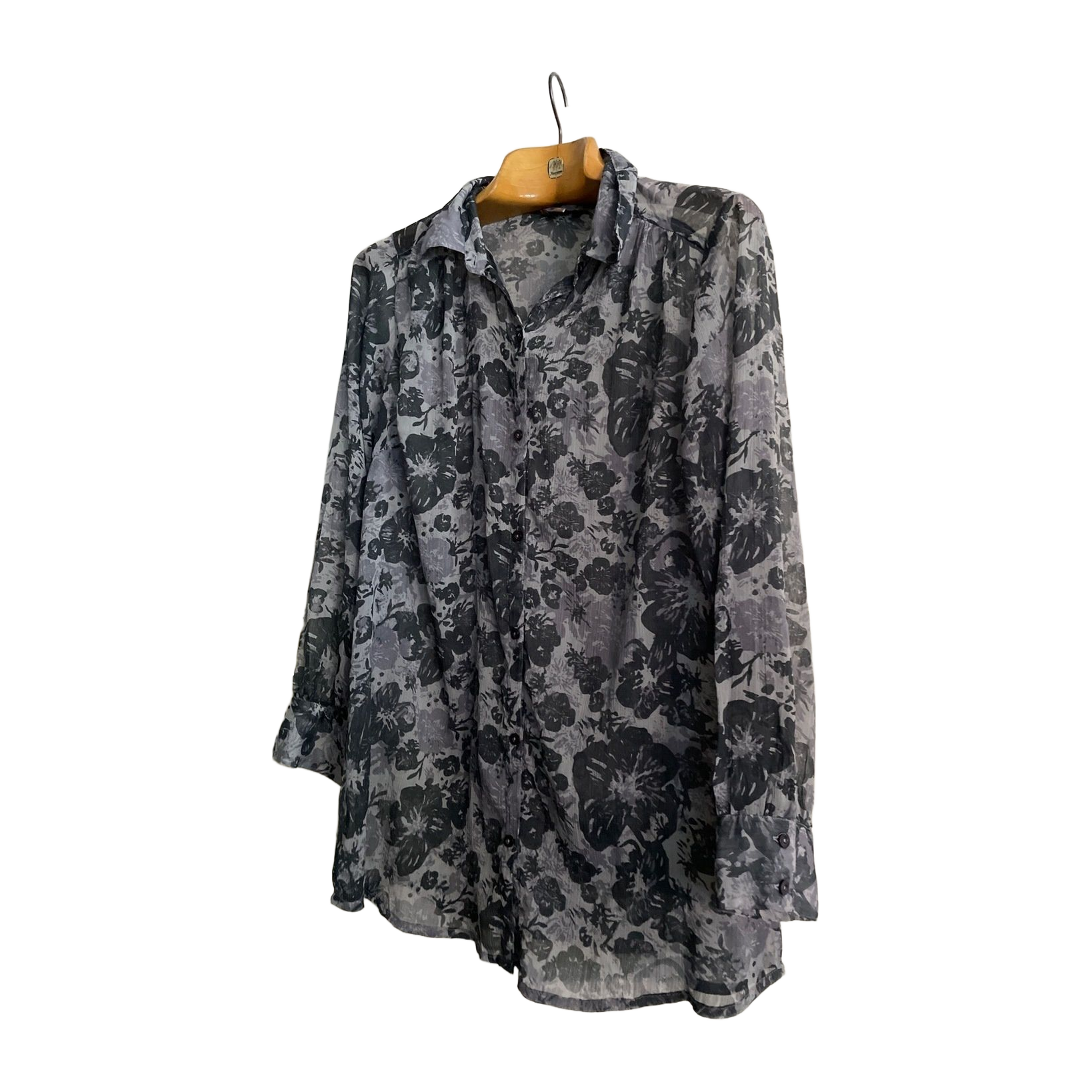 Long shirt/blouse / tunic. Cool gray, maybe slightly lilac? Size L-XL, size label 44