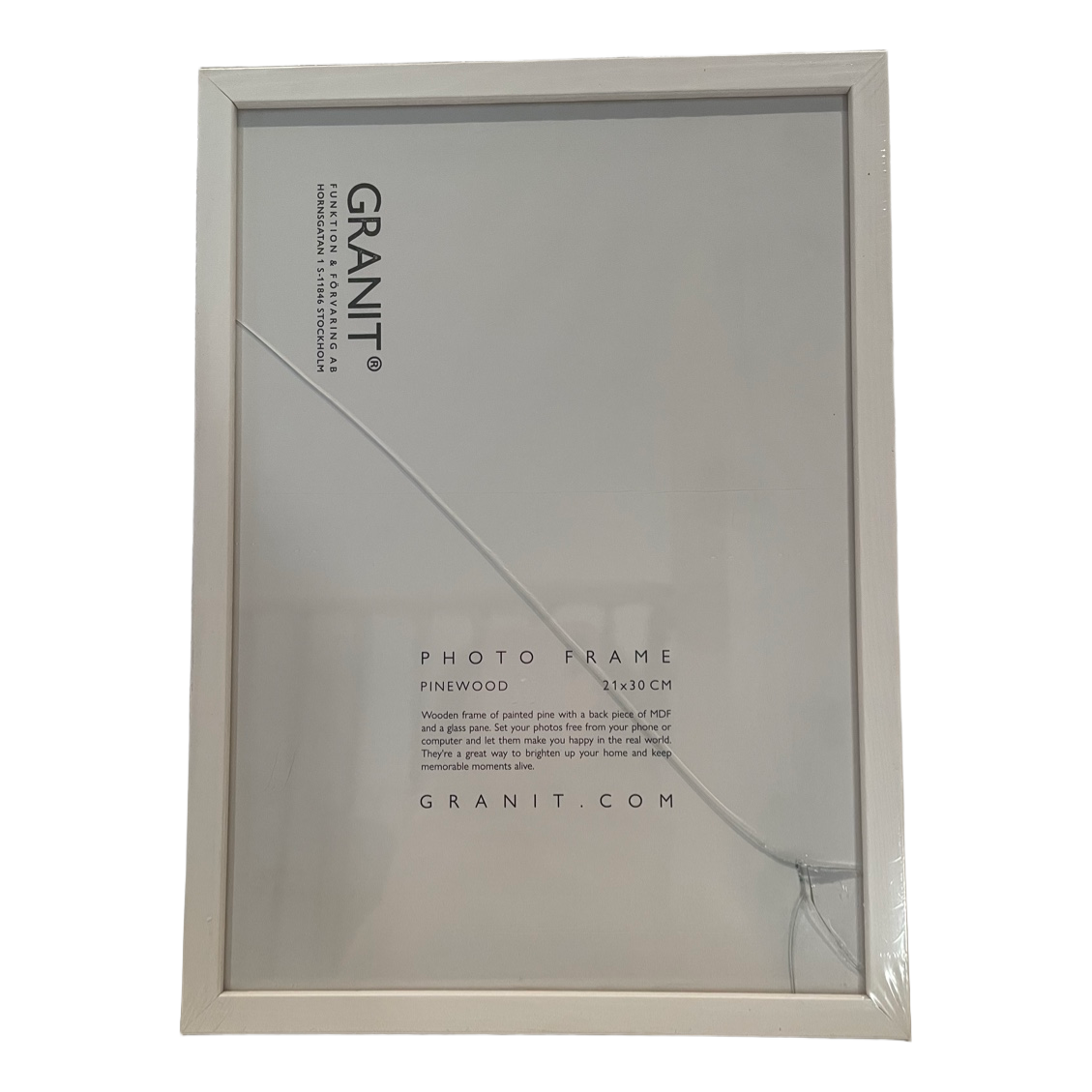 The frame is still in the package, but the glass is unfortunately broken. Otherwise the frame is new.