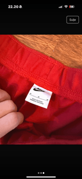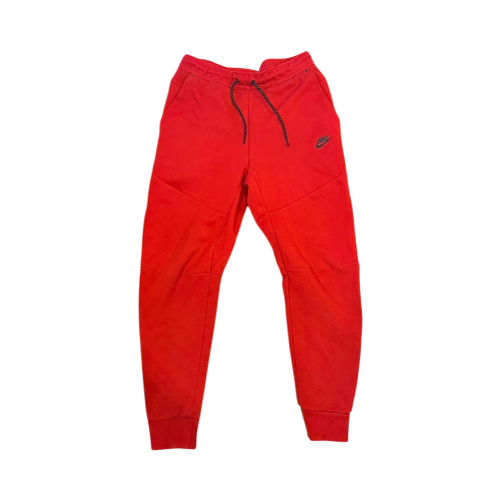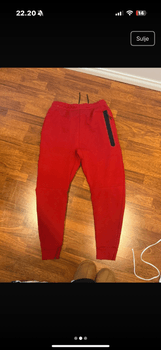 Used red Nike pants, size M. Includes drawstring at the waist.