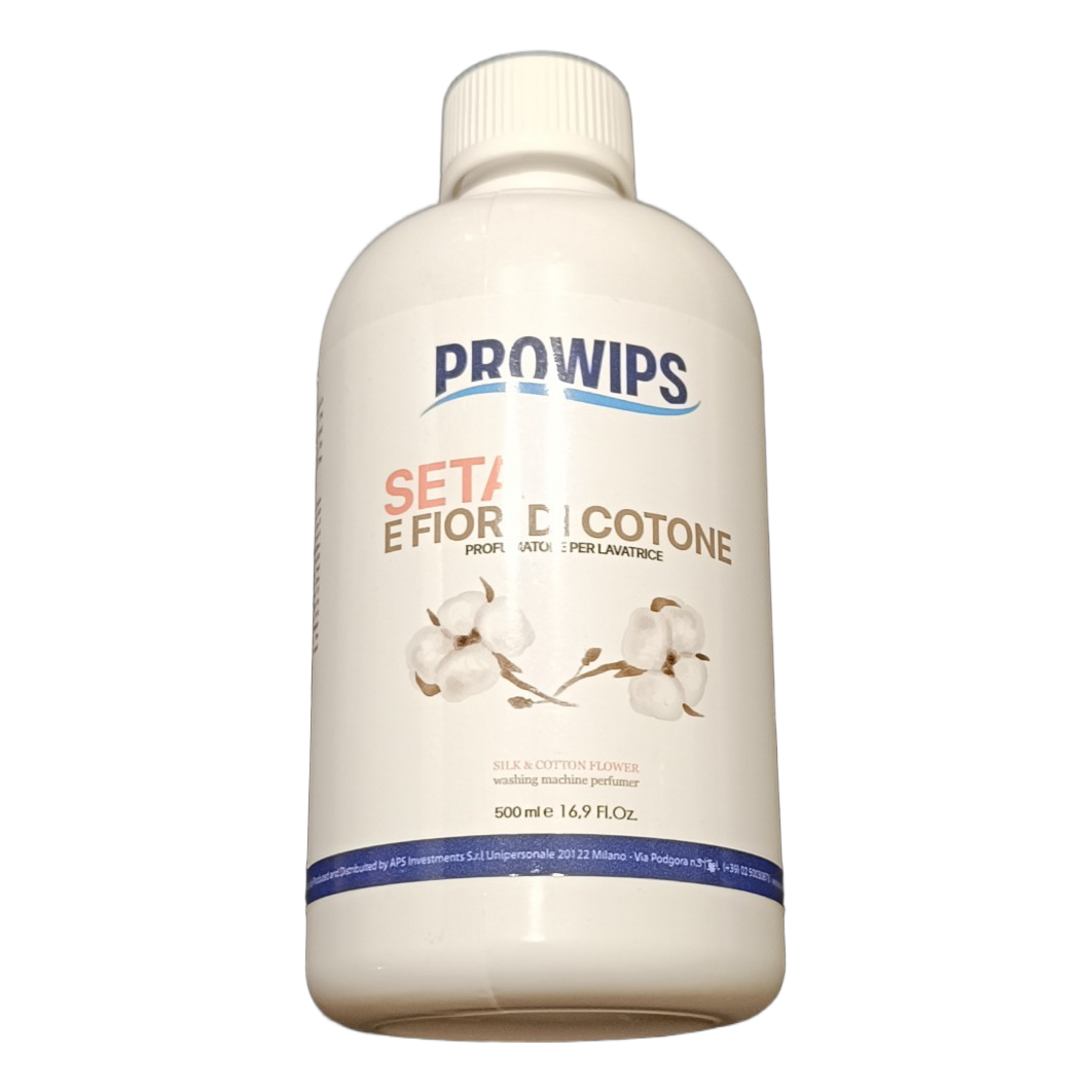 Laundry perfume with silk and cotton flower scent. 500ml bottle for machine use.