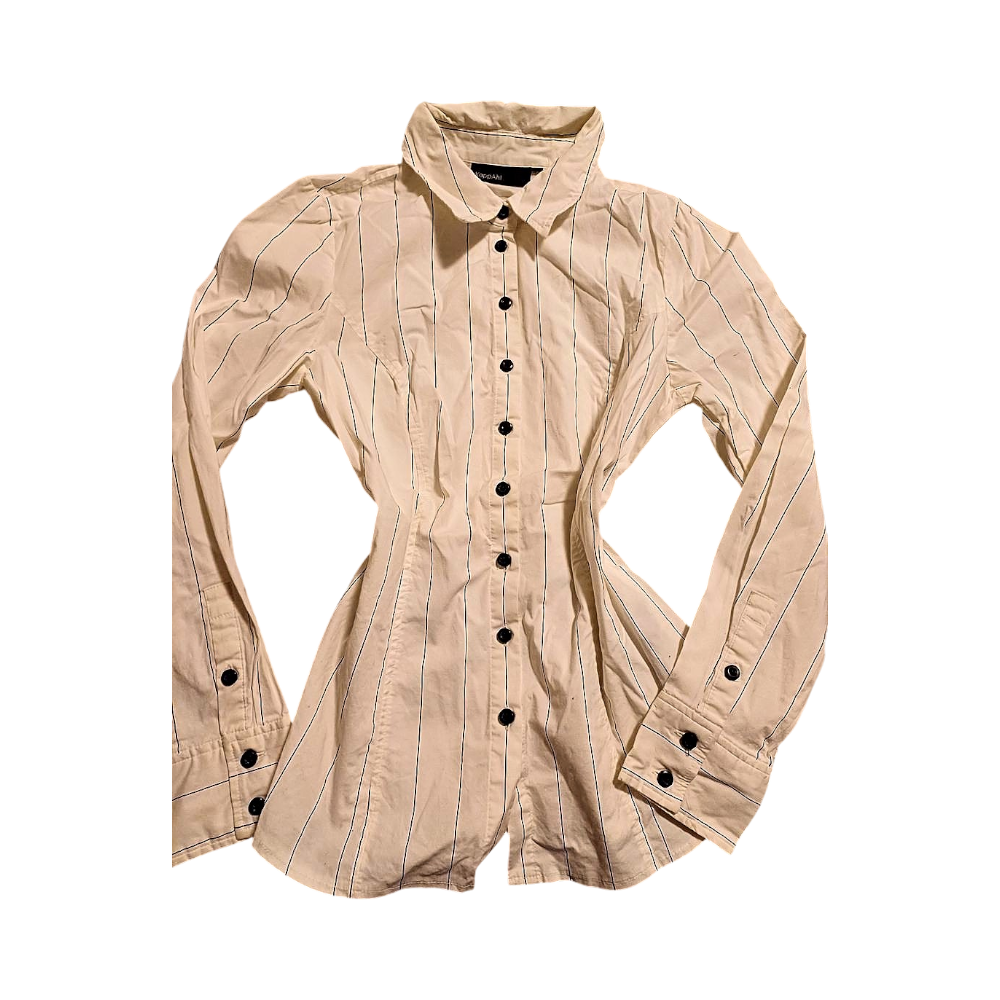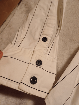 Sleeveless shirt with black stripes. Buttoning at the front and black buttons on the cuffs. Brand KappAhl.