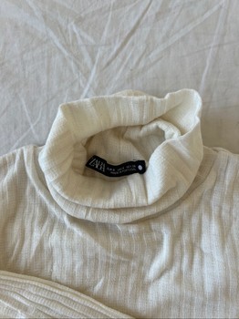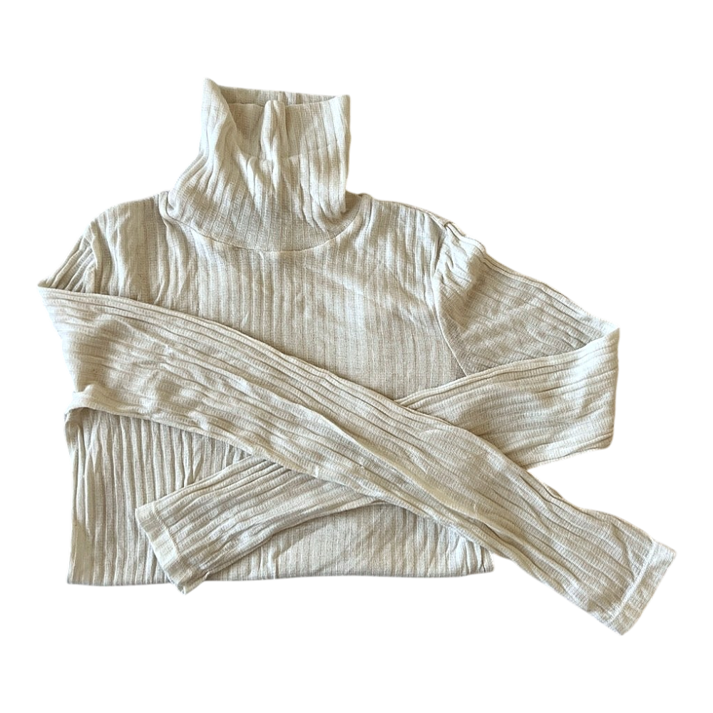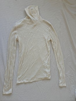 Cream-colored ribbed turtleneck. Long-sleeved, size S.