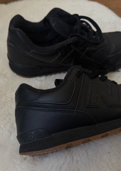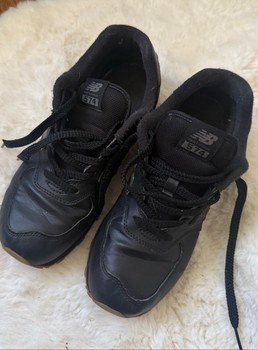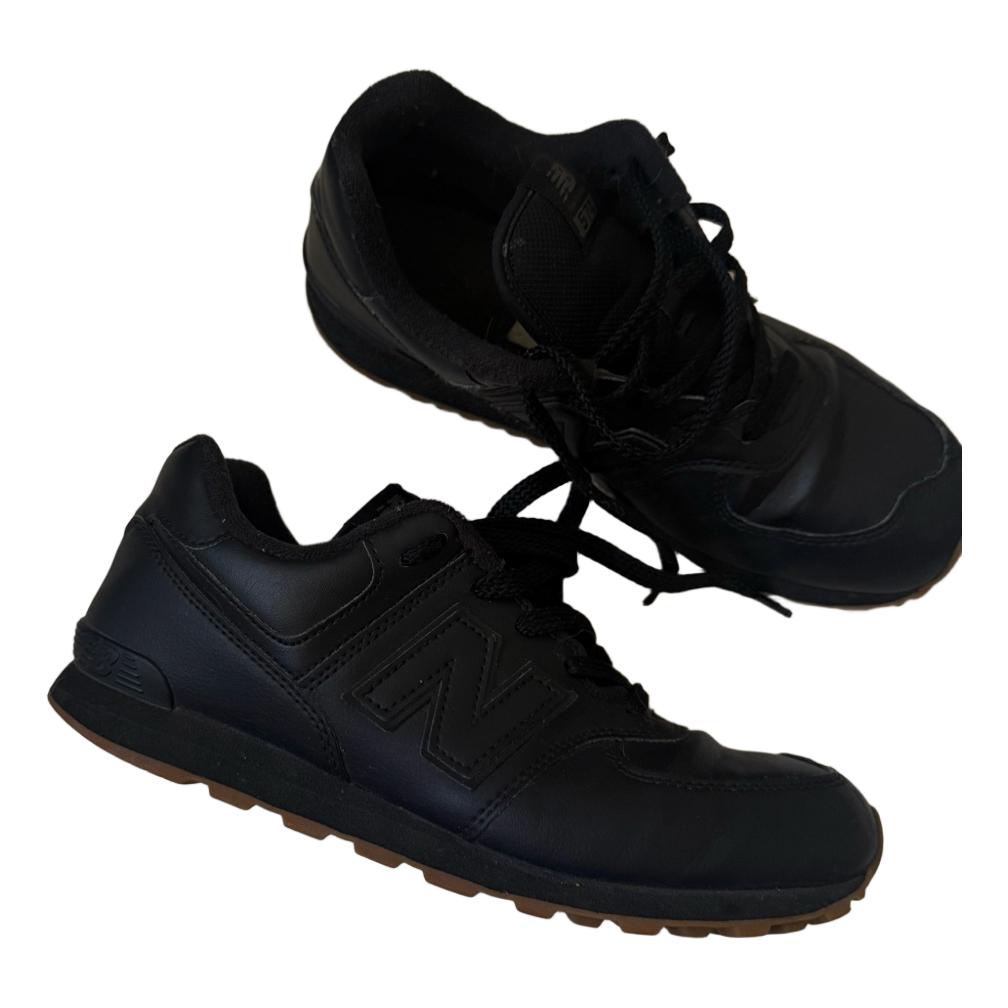 Black New Balance 574 sneakers with gum rubber outsoles. Size 39.