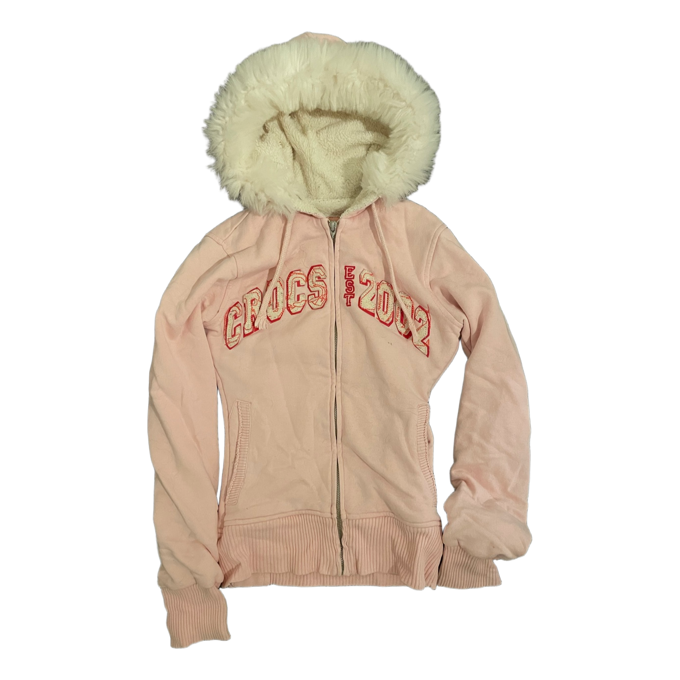 Gorgeous Y2K hoodie. I bought it used myself and there are some signs of wear, the most visible being that stain which shows best in the last picture. Small size and I would say it fits more like XS than S.