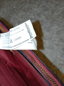 Three-part shoulder bag, adjustable strap. Has gotten small signs of use in storage