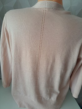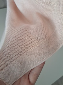 Light pink knit cardigan by Esprit. Open front design with ribbed cuffs and hem.