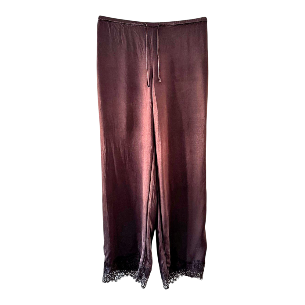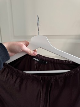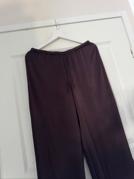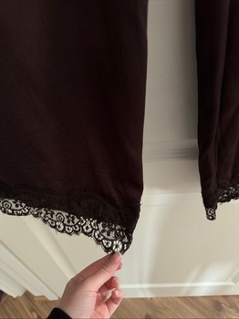 Bik Bok's dark brown "satin" trousers. Lace trim on the legs. Size S. Sold out. The first picture slightly distorts the color; they are completely dark brown.