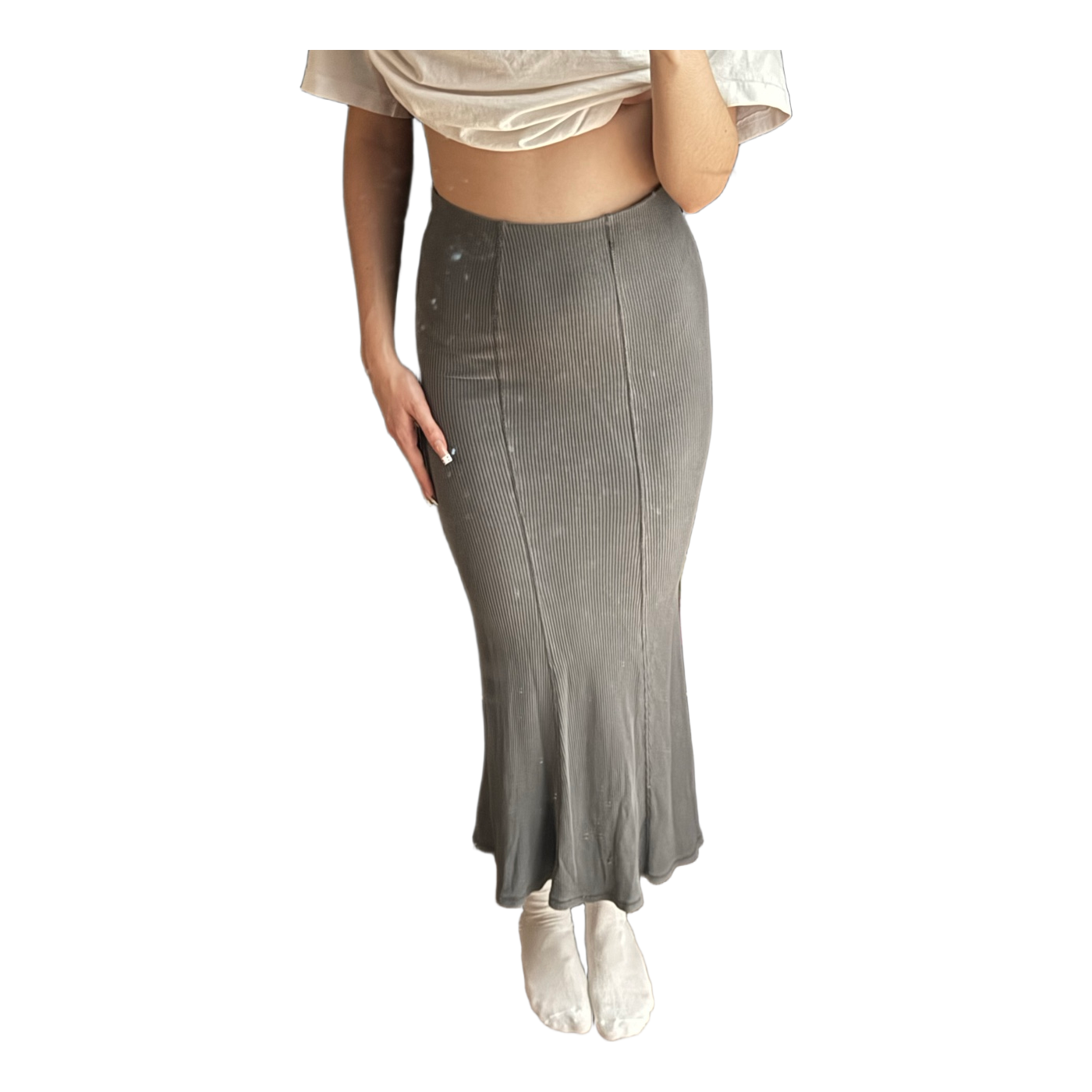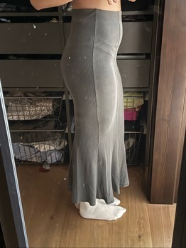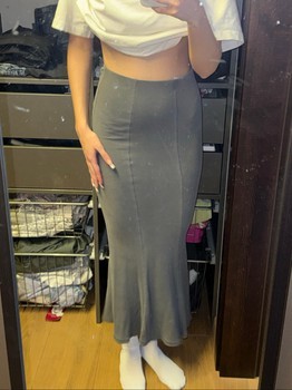 Ribbed maxi skirt with an elastic waistband. Featuring a fishtail design, color grey. Size XS.