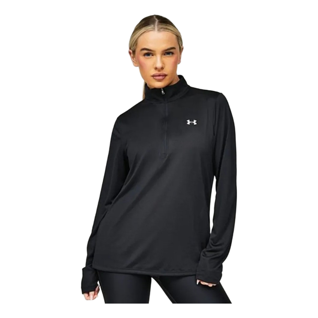 High-quality Under Armour long sleeve training top with half zip and high collar. Perfect for workouts, running, or everyday athleisure wear.