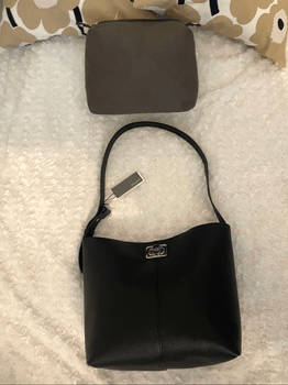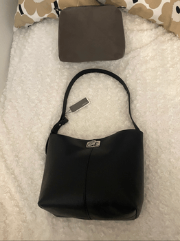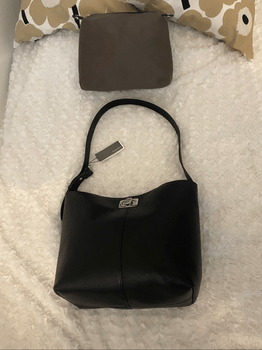 New, tags attached Parfois-branded black shoulder bag. Includes brown inner pouch.