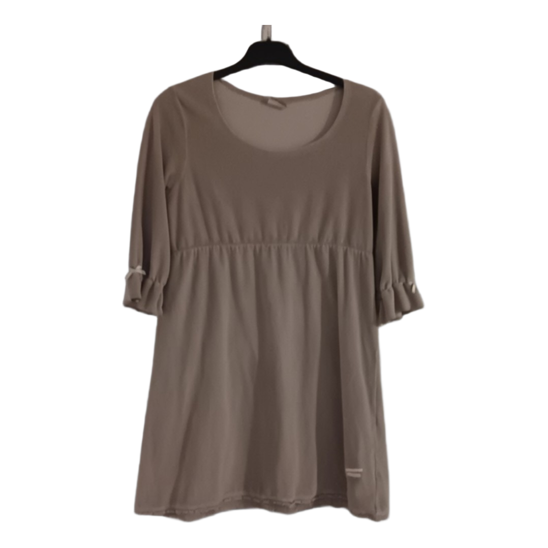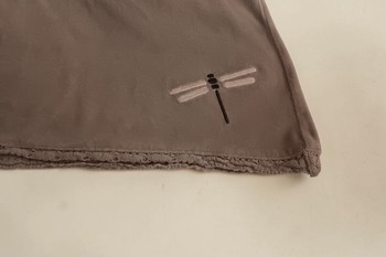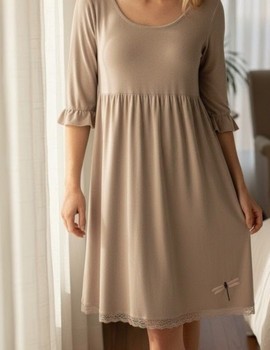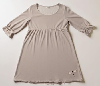 Beige tunic, with a dragonfly pattern on the hem and lace trim. Made from a cotton blend.