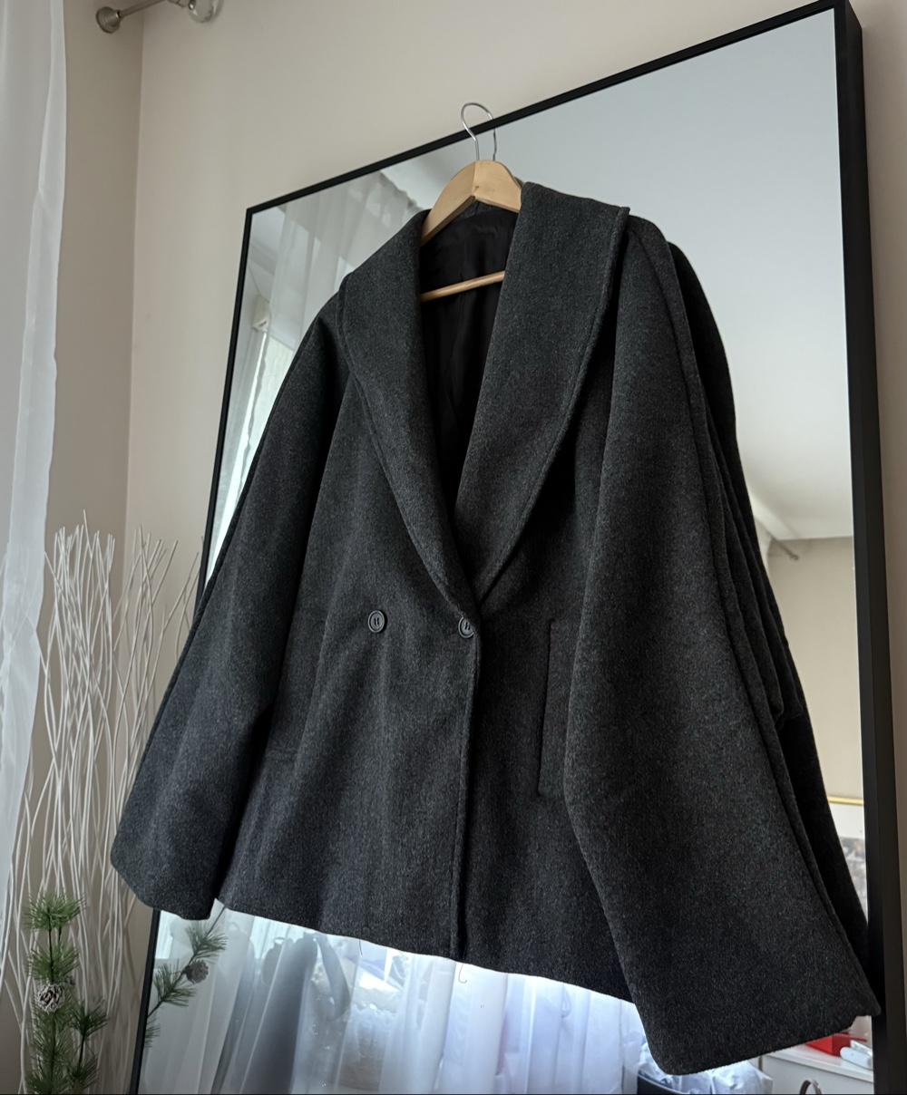 Parduodu nuostabų, šiltą ir labai madingo "oversize" (padidinto) silueto pilką puspaltį. Puikiai krenta, nevaržo judesių, o plačios, šiek tiek tipo rankovės suteikia išskirtinumo.