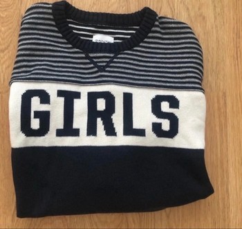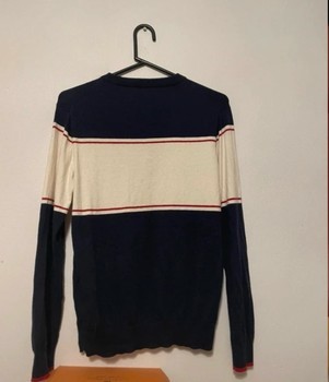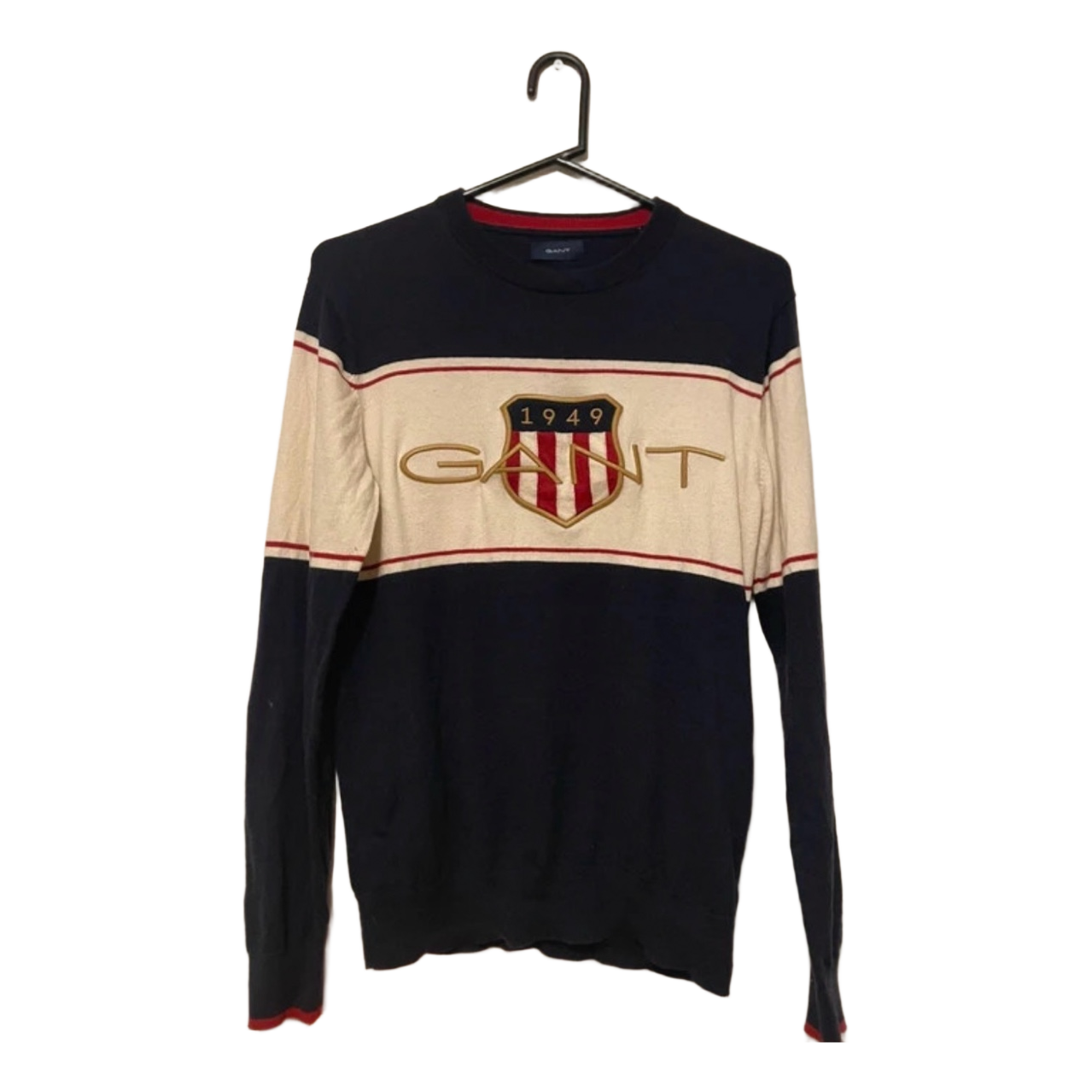 Blue-and-white Gant sweater, with embroidery on the chest. Made of 70% cotton and 30% wool.